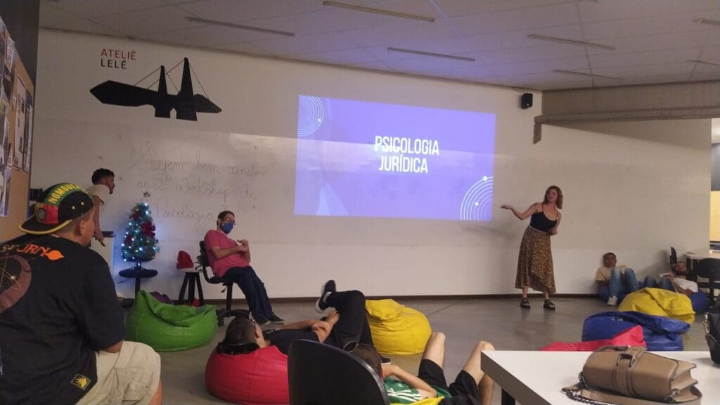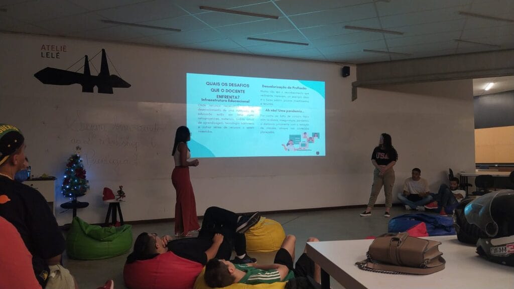 Como atividade de encerramento do semestre, as cinco turmas de Psicologia se reuniram no Ateliê da Arquitetura para apresentação de seus trabalhos e iniciativas acadêmicas realizadas durante os módulos. Os calouros realizaram cartilhas de orientações e diretrizes sobre os desafios do profissional recém-formado, no intuito de compartilhar com os veteranos essas dificuldades.