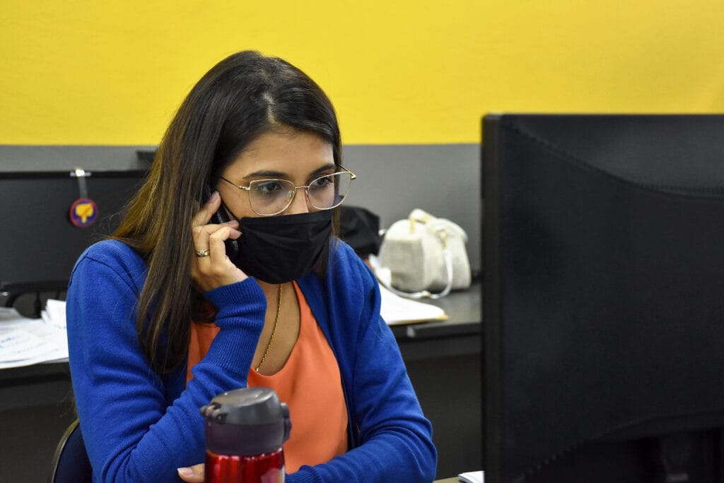 Junto aos funcionários do Departamento de Saúde, os estudantes são responsáveis por manter contato com quem está contaminado ou pode estar com o vírus Sars-Cov-2, causador da Covid-19. “O número de pacientes aumentou muito, então não estava mais sendo possível realizar o trabalho com o contingente de pessoal que eles tinham”, conta a coordenadora de Enfermagem, Eliane Mendes. “Os voluntários farão ligações diariamente, com uma série de perguntas que visam prevenir o agravamento ou detectar precocemente a doença”.
