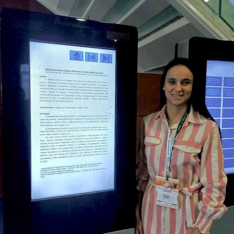 Durante o evento, publicações científicas foram apresentadas e nesse contexto fomos representados com estudos desenvolvidos pelo Centro Veterinário e orientados pelos Docentes do Curso de Medicina Veterinária, e nesse contexto, contamos com a participação da Médica Veterinária Maéli Ribeiro de Faria e da nossa parceira Bruna Saponi.