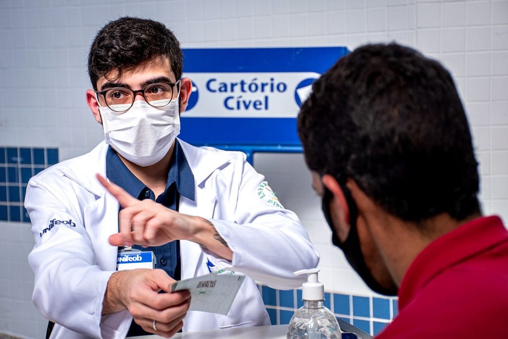 A Unifeob tem contribuído ativamente com a cessão do Centro Cultural, localizado no centro da cidade, que facilita a logística da vacinação e alivia a demanda pelas unidades básicas de saúde (UBS), e com o apoio total de docentes, preceptores e estudantes do curso de Enfermagem, cujo auxílio durante a pandemia contribui com a comunidade não apenas a curto prazo, mas também a longo, uma vez que sua formação está sendo enriquecida e se tornarão melhores profissionais.