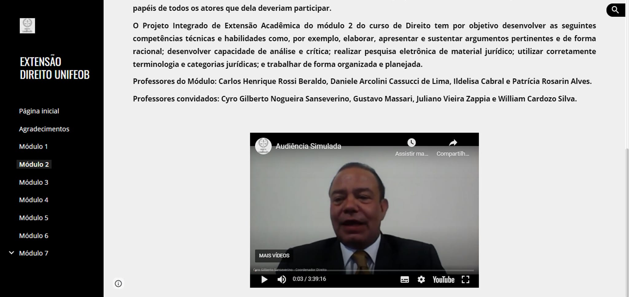 Para coletivizar os saberes relacionados ao Direito de forma acessível e de fácil entendimento, o módulo 3 criou sites temáticos orientados pela Prof. Rosana Ribeiro da Silva, que visou trabalhar a interdisciplinaridade. “A vida hoje é informatizada, e mais ainda no âmbito jurídico. O desafio de preparar os estudantes para esta nova realidade foi grande, mas com resultados dos quais muito nos orgulhamos”, garante. “Direito e responsabilidade social resultaram nos projetos que estão aí para todos usufruírem”.