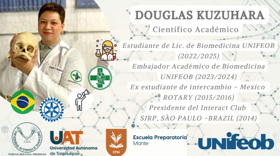 O embaixador do curso de Biomedicina Douglas Kuzuhara foi convidado pela escola “Preparatoria Mante”, localizada no México, para realizar uma palestra sobre as diferenças da biomedicina nos dois países, Brasil e México. A atividade vai acontecer durante a semana acadêmica da universidade mexicana.
