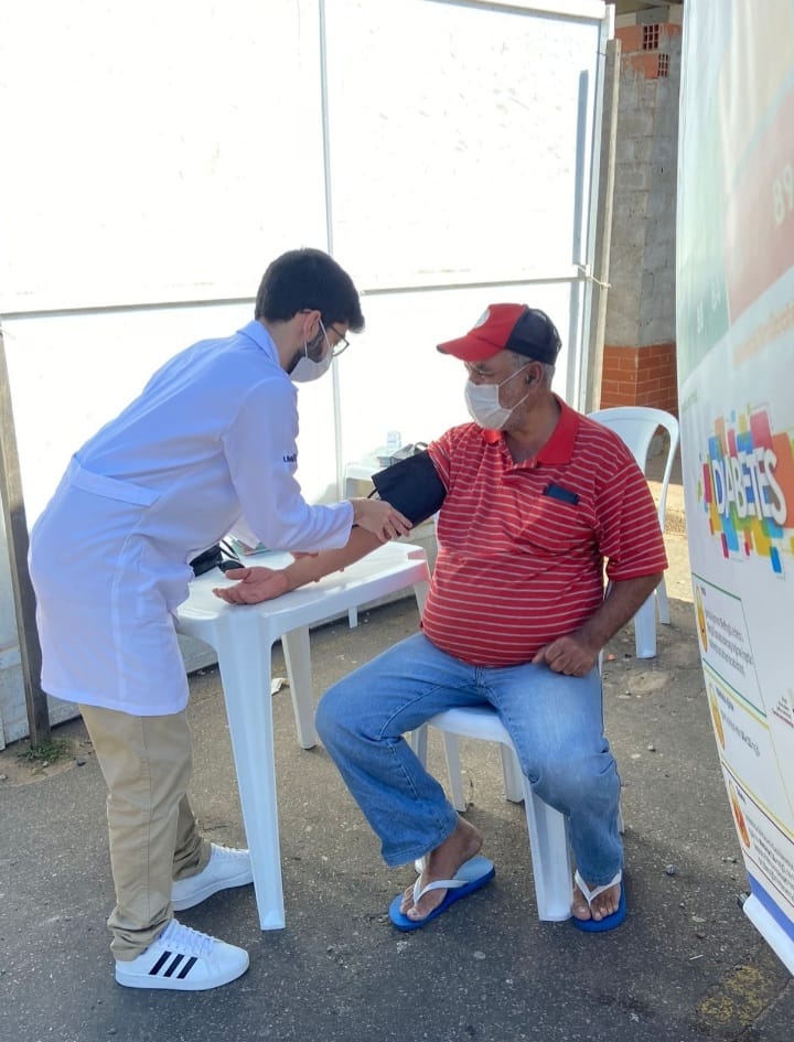 E entre as atividades levadas aos moradores do Eldorado, a professora do curso de Enfermagem da UNIFEOB Lívia Cristina Scalon da Costa Perinoti e os alunos Paula Toesca, Fernando Ribeirinho, Nicole Pellegrini e Lucimara Falda promoveram ação na área da saúde, realizando aferição de pressão arterial, glicemia capilar e distribuição de absorventes. Além disso, a docente e os estudantes desenvolveram orientações sobre saúde da mulher.