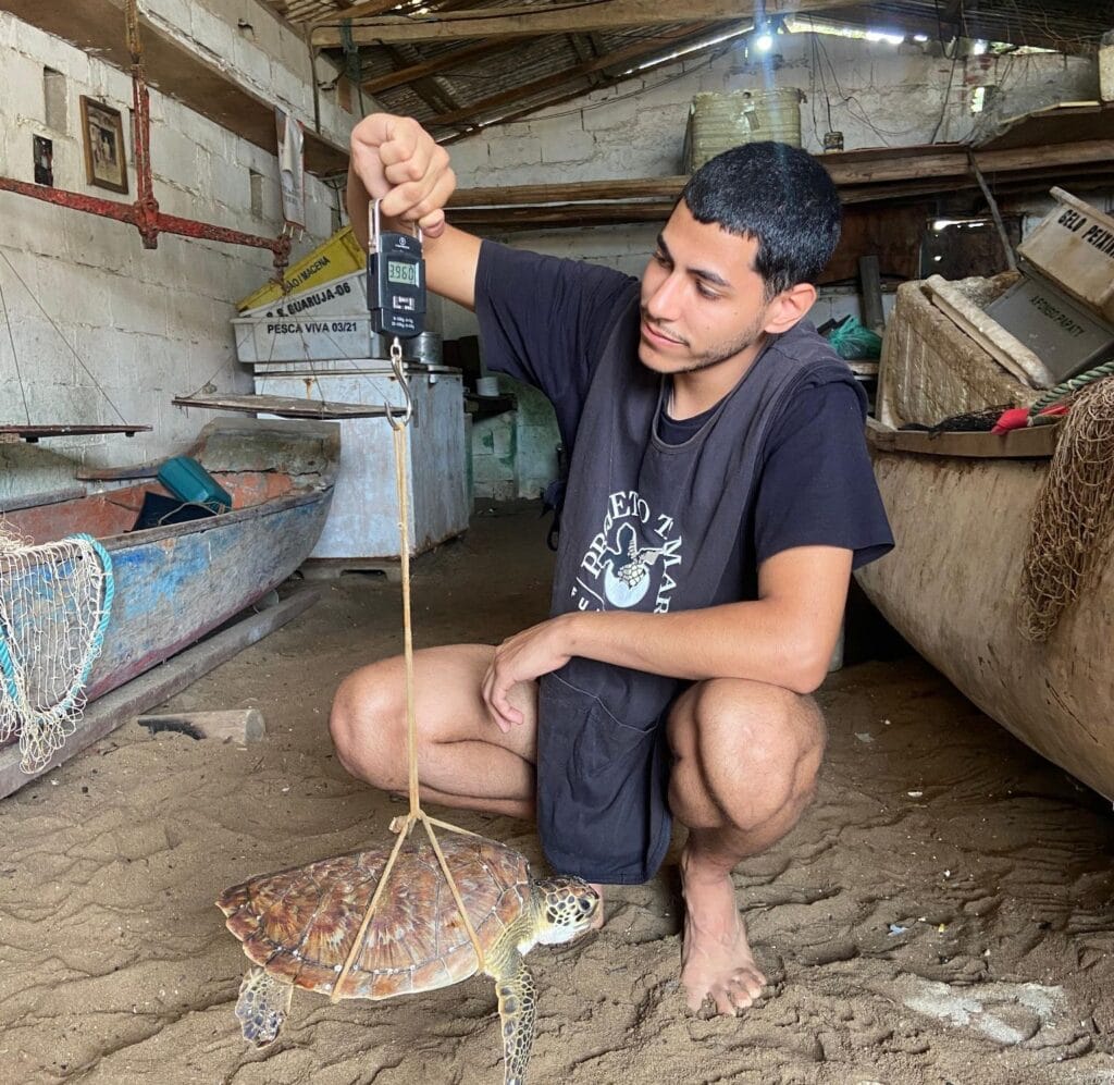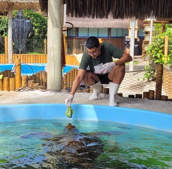 Antes de iniciar as atividades, Giovani e os demais estagiários participaram de uma capacitação, onde aprenderam sobre a trajetória e o impacto do Projeto Tamar, além de aspectos específicos da biologia e da conservação das tartarugas marinhas.