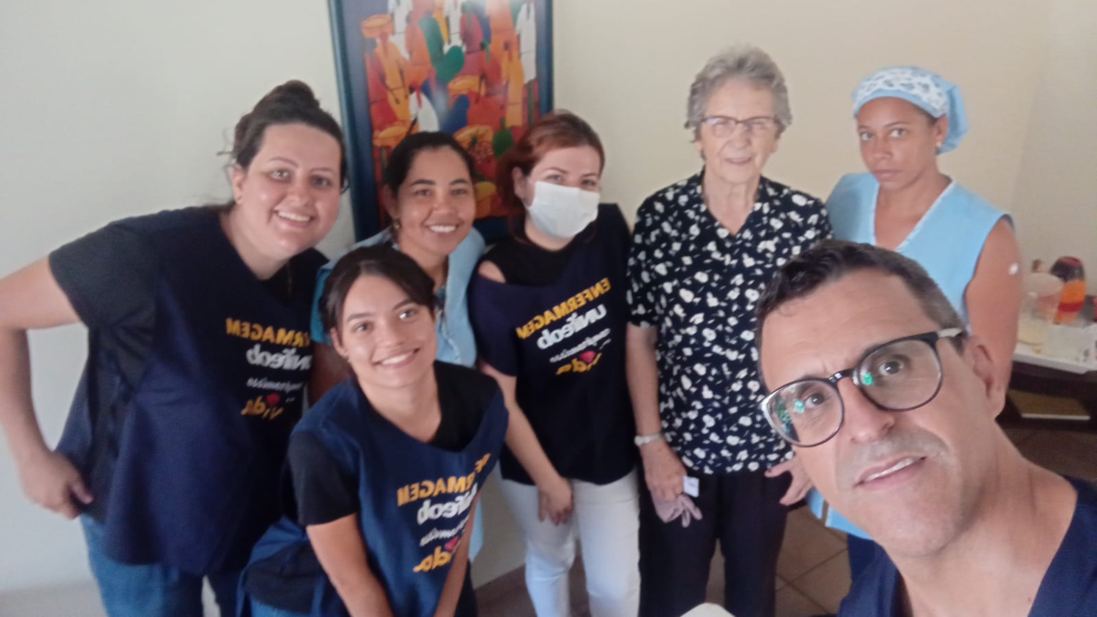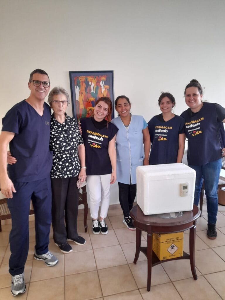Estudantes do sétimo módulo de enfermagem, com supervisão do preceptor Geraldo Antônio e em parceria com a equipe profissional da UBS do Delvo Westim, realizaram a vacinação da gripe e covid-19 na casa das Irmãs de Santo André.