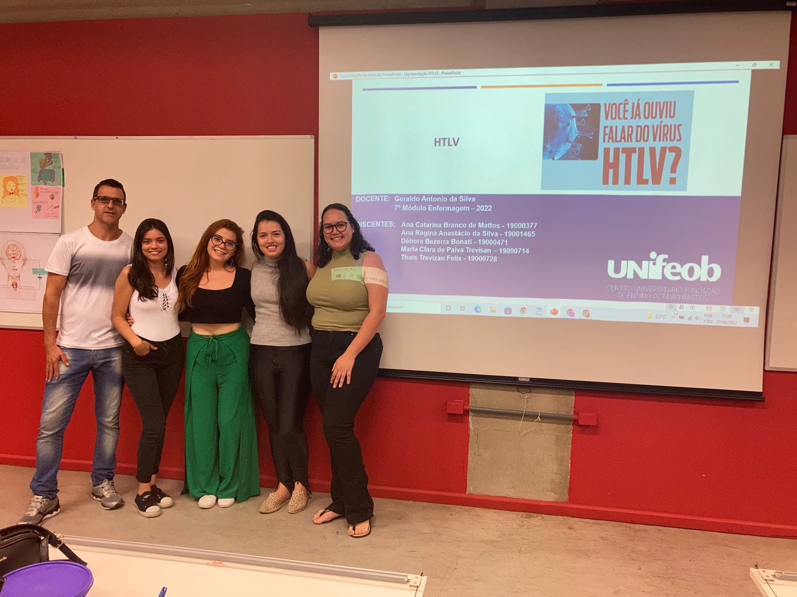 Durante uma aula especial, estudantes do sétimo módulo da graduação em Enfermagem da Unifeob realizaram uma apresentação sobre patologia HTLV (Vírus Linfotrópico da Célula T humana) aos estudantes do Curso Técnico de Enfermagem.