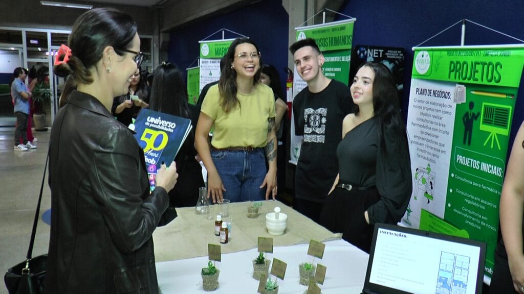 Já os estudantes do módulo de Pesquisa e Inovação Farmacêutica, também do curso de farmácia, criaram uma empresa júnior e se dividiram em setores, sendo marketing, infraestrutura, recursos humanos e área de projetos.