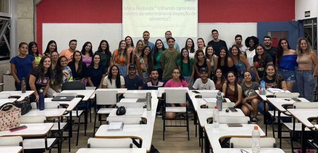 O principal objetivo foi proporcionar uma oportunidade única para que os estudantes pudessem interagir diretamente com profissionais experientes ali presentes, permitindo-lhes obter insights valiosos sobre as diversas áreas de atuação do médico veterinário na Inspeção de Alimentos.