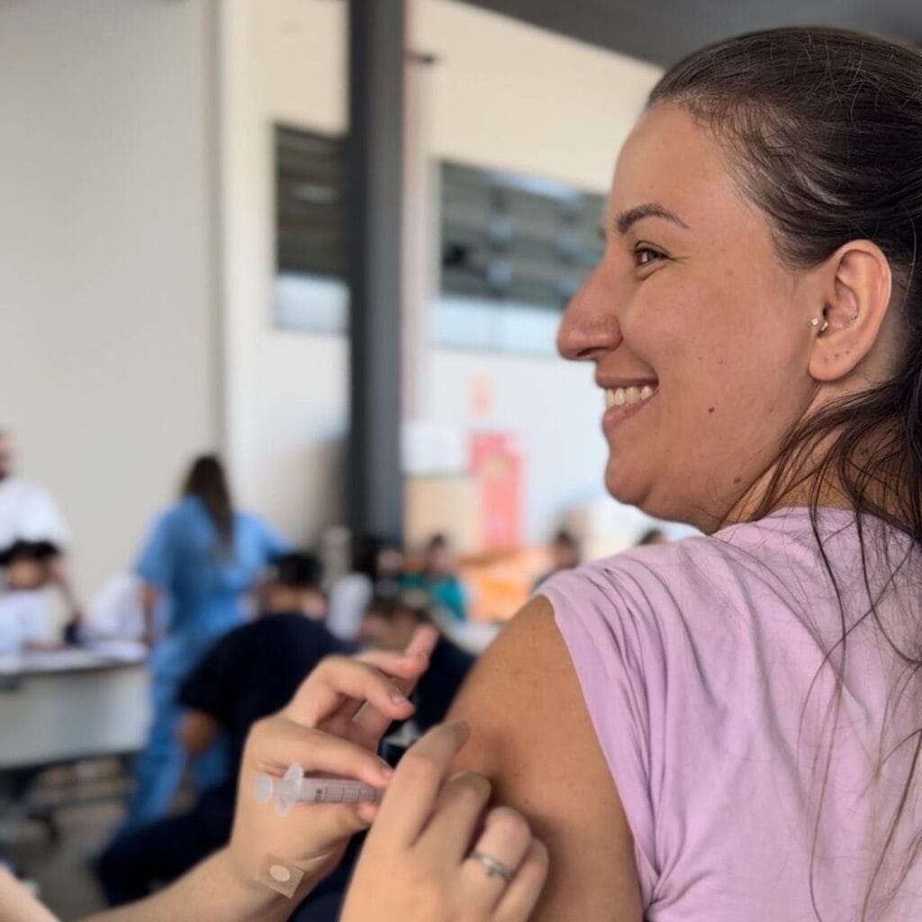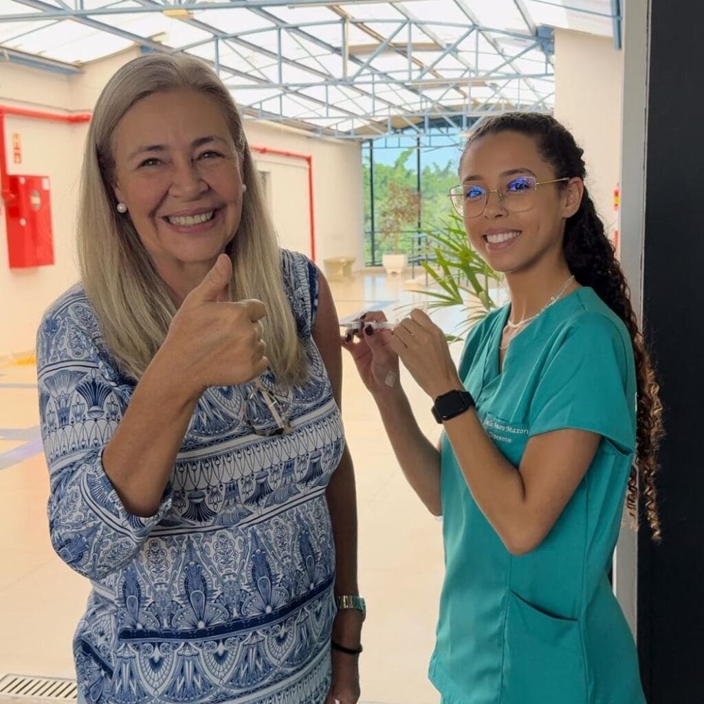 A ação contou ainda com a participação do curso de Enfermagem da UNIFEOB, que, sob a coordenação da Professora Eliane Mendes, professores, preceptores e estudantes, auxiliaram no cadastro e aplicação das vacinas.