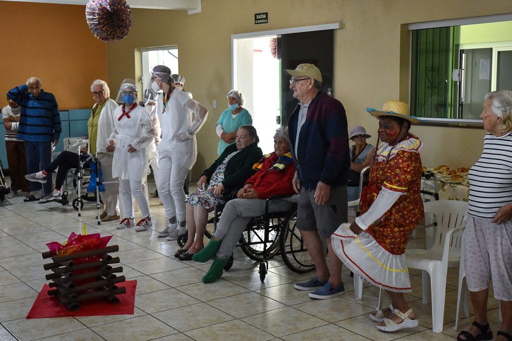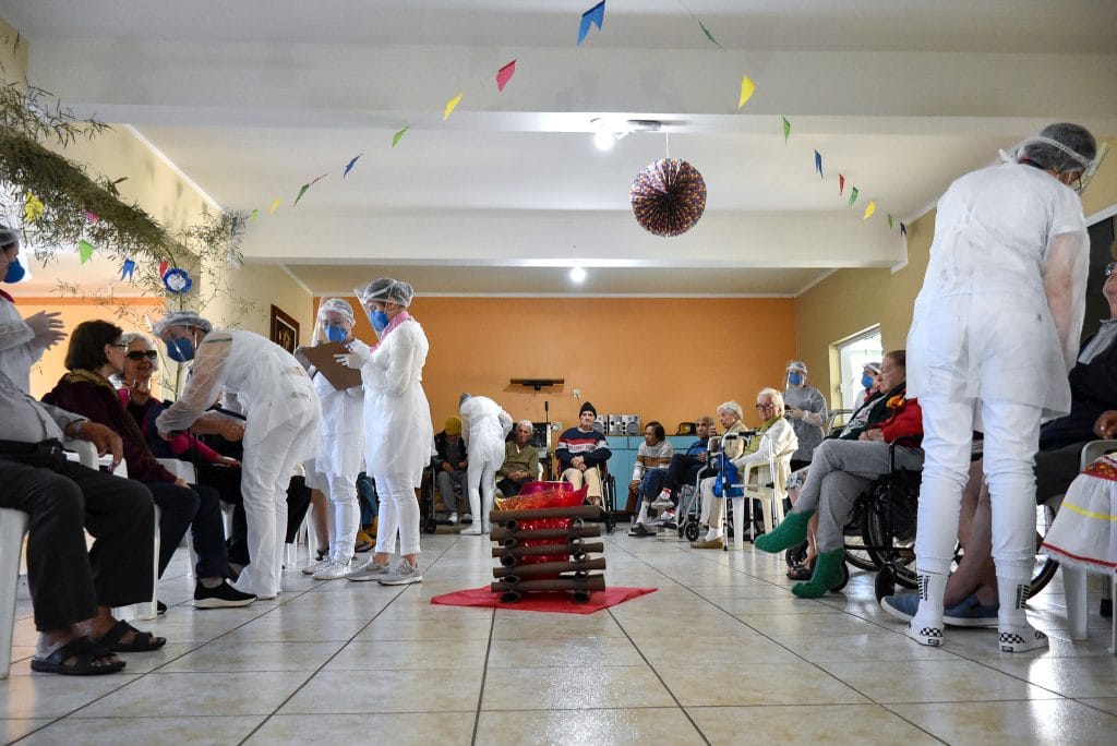 Exercícios terapêuticos e aferição de pressão arterial foram feitos enquanto os residentes se divertiam com direito à quadrilha e comidas típicas.