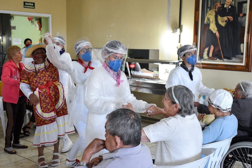 O curso de Fisioterapia Unifeob promoveu uma tarde junina a 32 residentes do Lar São Vicente na sexta-feira (18). Com muita diversão e todas as medidas de segurança, foi organizada uma quadrilha para incentivar movimentos funcionais, equilíbrio e dissociação de cinturas, além de aferição de sinais vitais – como pressão arterial, frequência cardíaca e saturação periférica de oxigênio – antes e depois das atividades. Esses dados também são aferidos diariamente pela equipe do Lar São Vicente, de modo a poderem ser comparados para identificar qualquer discrepância.
