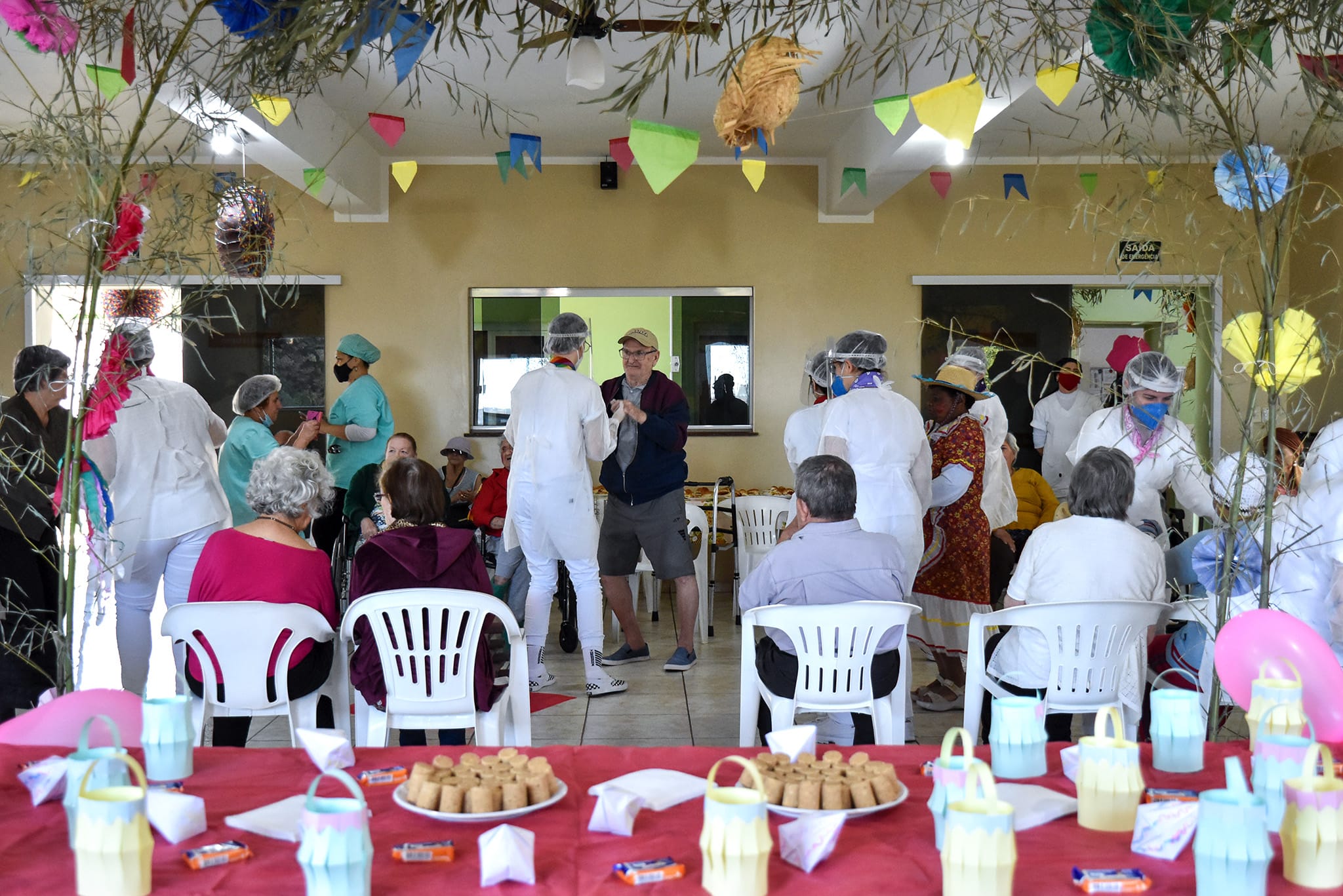Exercícios terapêuticos e aferição de pressão arterial foram feitos enquanto os residentes se divertiam com direito à quadrilha e comidas típicas.