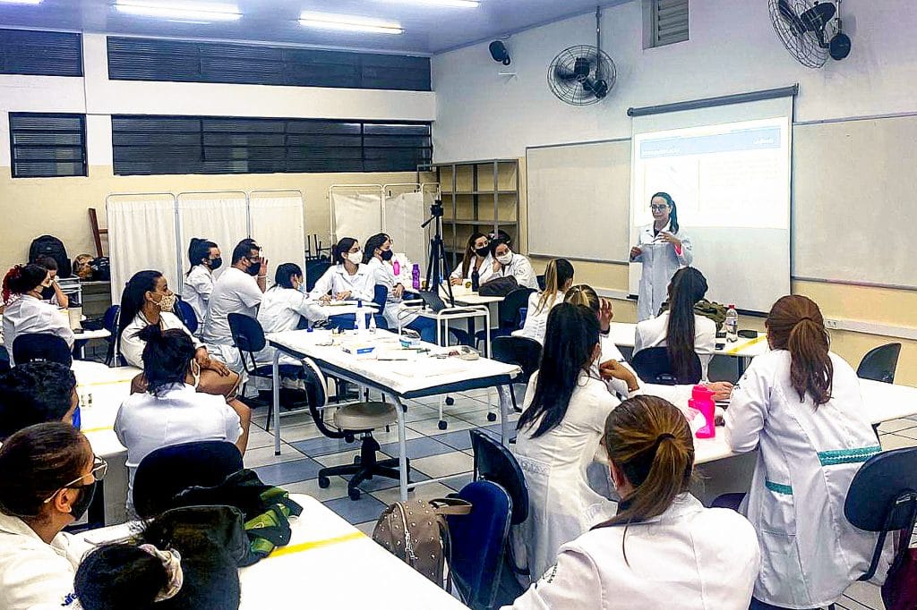 “Iniciamos nossa semana com a unidade de estudos de Semiologia e Semiotécnica. São práticas que, quando conduzidas por enfermeiros capacitados e habilitados, geram resultados positivos e oferecem um trabalho de qualidade e uma recuperação humanizada aos pacientes”, explica a docente Daniela Bertolin, que conduziu os estudos com a Prof. Priscila Serraiocco. “É um tema de bastante relevância, por dar mais autonomia aos futuros enfermeiros”.