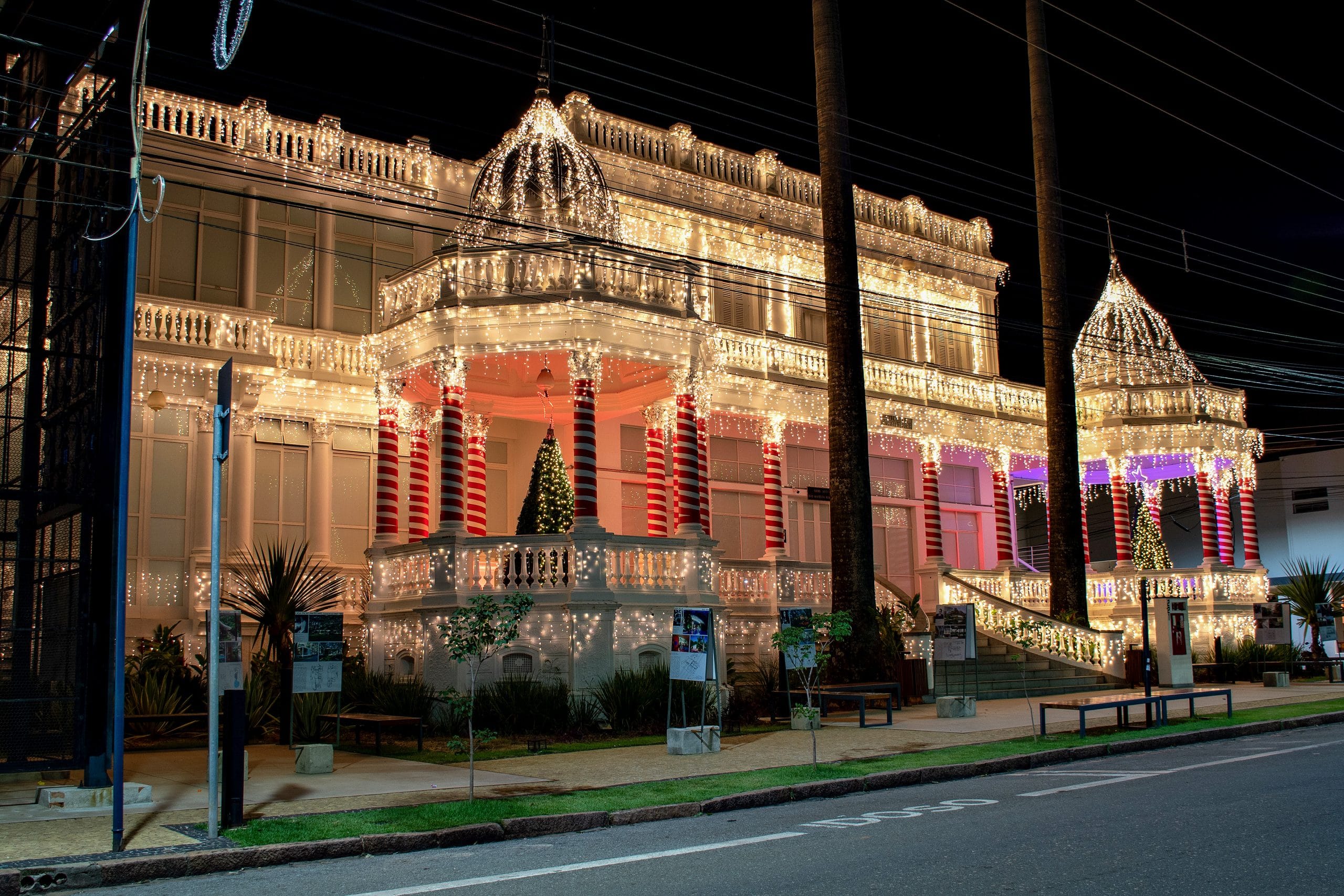 Com direito a Papai Noel e trilha sonora temática, as luzes natalinas do Clube do Palmeiras foram acendidas oficialmente de forma emocionante durante o discurso do colaborador Matheus Lianda, da área de Marketing, na quarta-feira (8). Ao longo da noite, além de se encantar com a beleza das milhares de lâmpadas dispostas pelo edifício histórico, os sanjoanenses que visitavam a Praça do Palmeiras também puderam aprender muito e se divertir com os estandes de cada curso de graduação da Unifeob, montados e conduzidos por embaixadores, estudantes e professores da instituição.