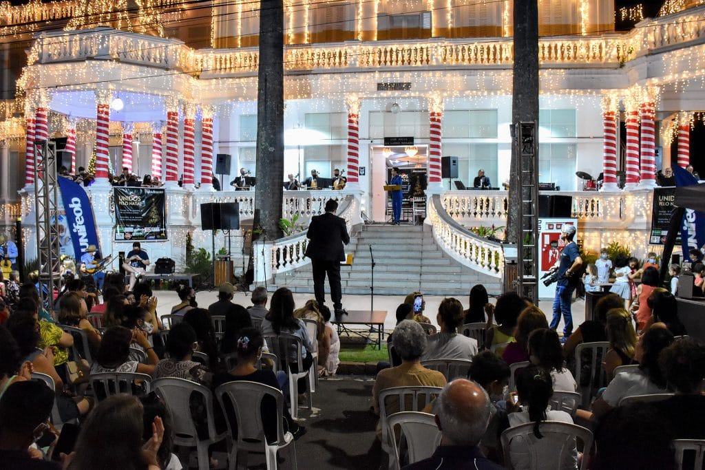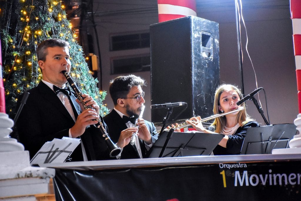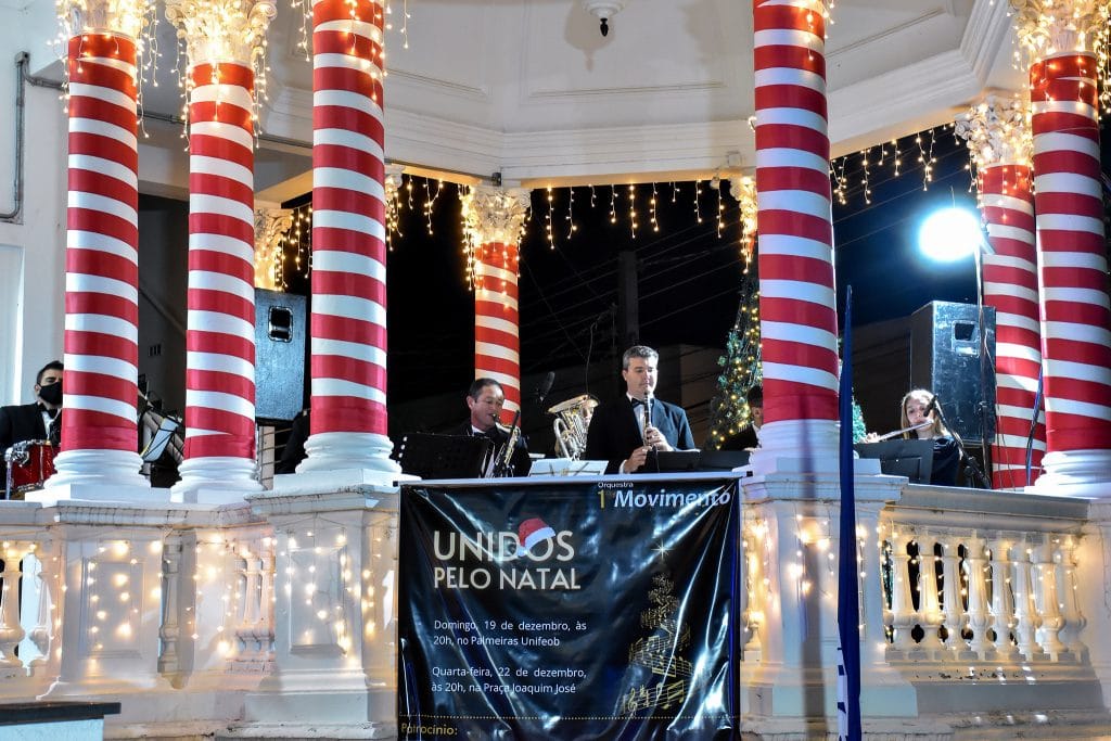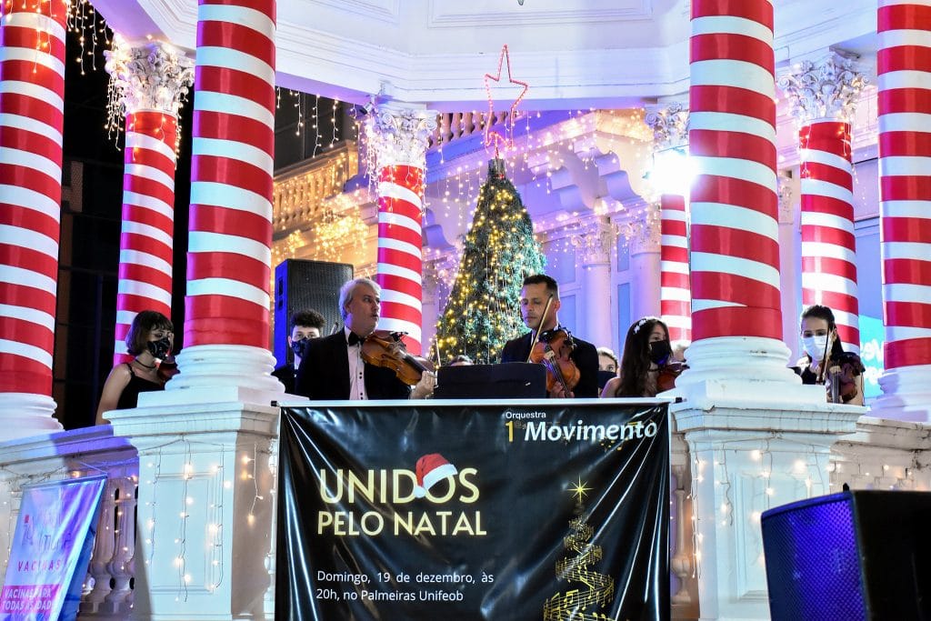 Mais de 500 pessoas puderam aproveitar as atrações do Unidos Pelo Natal com a Orquestra 1º Movimento, na noite do último domingo (19), na Praça do Palmeiras. Com apoio da Unifeob e da Prefeitura de São João da Boa Vista, os músicos e outros artistas convidados emocionaram os presentes, divertiram as crianças e deram prosseguimento à tradição natalina da cidade.