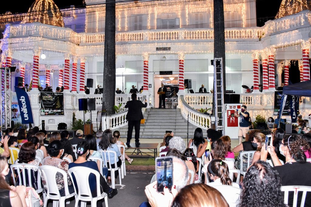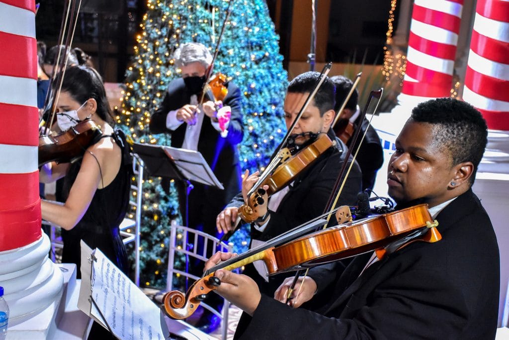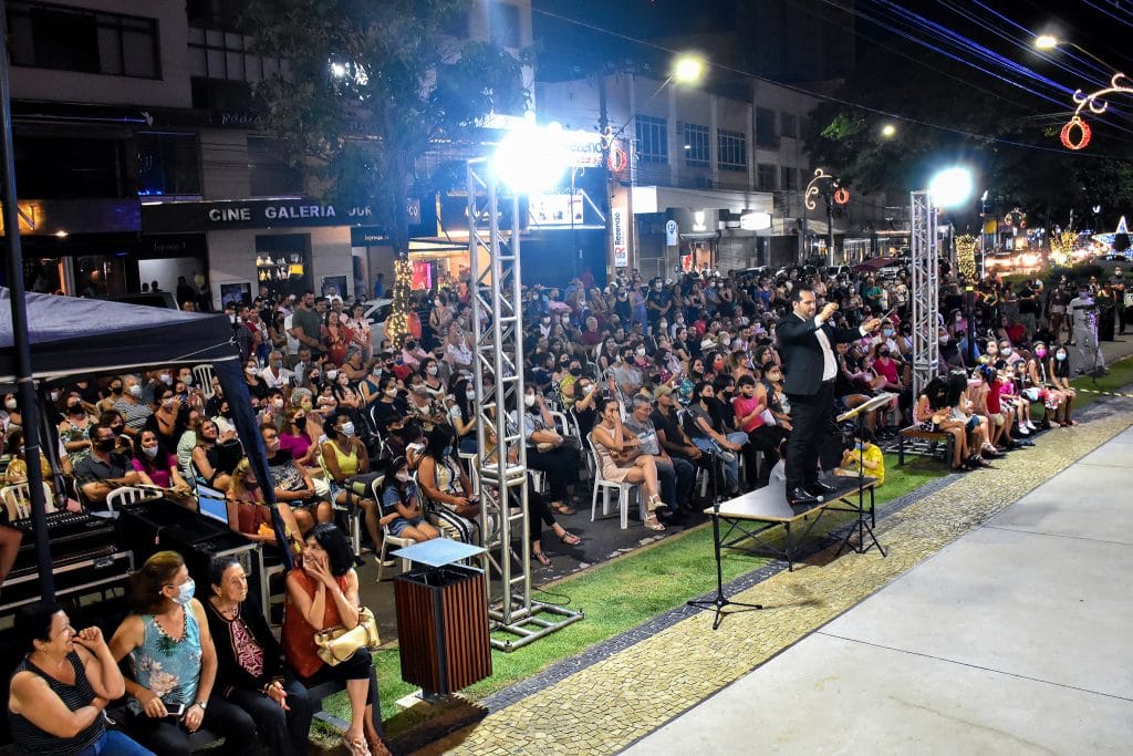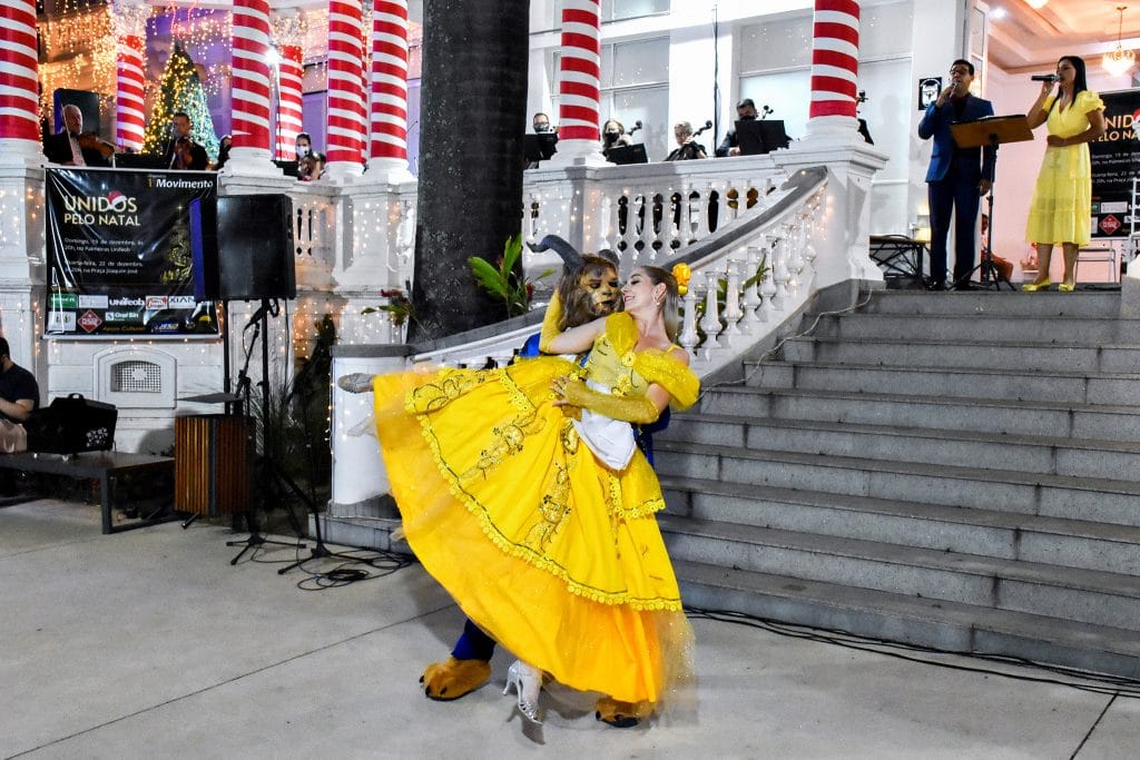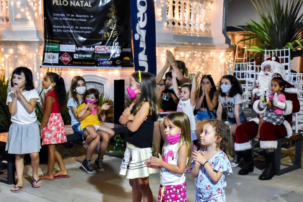 Mais de 500 pessoas puderam aproveitar as atrações do Unidos Pelo Natal com a Orquestra 1º Movimento, na noite do último domingo (19), na Praça do Palmeiras. Com apoio da Unifeob e da Prefeitura de São João da Boa Vista, os músicos e outros artistas convidados emocionaram os presentes, divertiram as crianças e deram prosseguimento à tradição natalina da cidade.