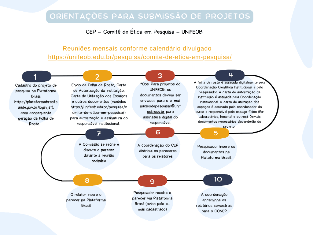 O CEP da UNIFEOB é composto por membros titulares e suplentes, que priorizam a dignidade da vida humana e a proteção dos participantes de pesquisas científicas que envolvem seres humanos, tendo o máximo de cuidado com a preservação dos direitos e deveres de todos os envolvidos no processo, sejam eles agentes de estudos ou desenvolvedores de pesquisas acadêmicas.