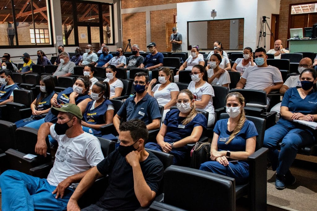 O encontro aconteceu no Teatro “Prof. Lucila Martarello Astolpho”, na Cidade das Artes, na quarta-feira (24). Estiveram presentes, além dos servidores, a prefeita Maria Teresinha Pedroza, a coordenadora do curso de Enfermagem, Eliane Mendes, e estudantes e docentes da Unifeob. “Essa palestra foi um pedido do Departamento de Recursos Humanos da prefeitura, a quem prontamente atendemos”, diz a coordenadora Eliane.