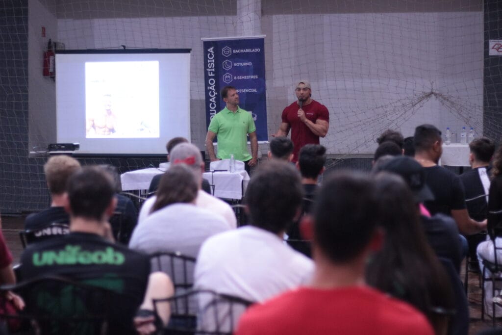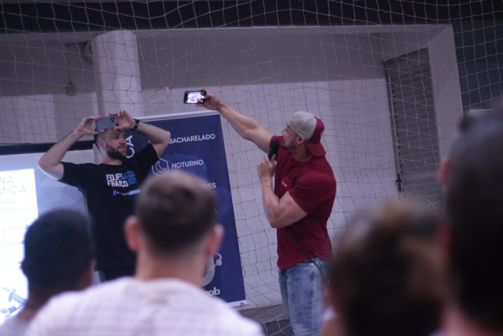 Já no dia seguinte, os acadêmicos participaram de uma dinâmica esportiva e receberam a presença do atleta e fisiculturista Felipe Franco. Felipe é conhecido nas redes sociais, e já acumula mais de quatro milhões de seguidores no Instagram.