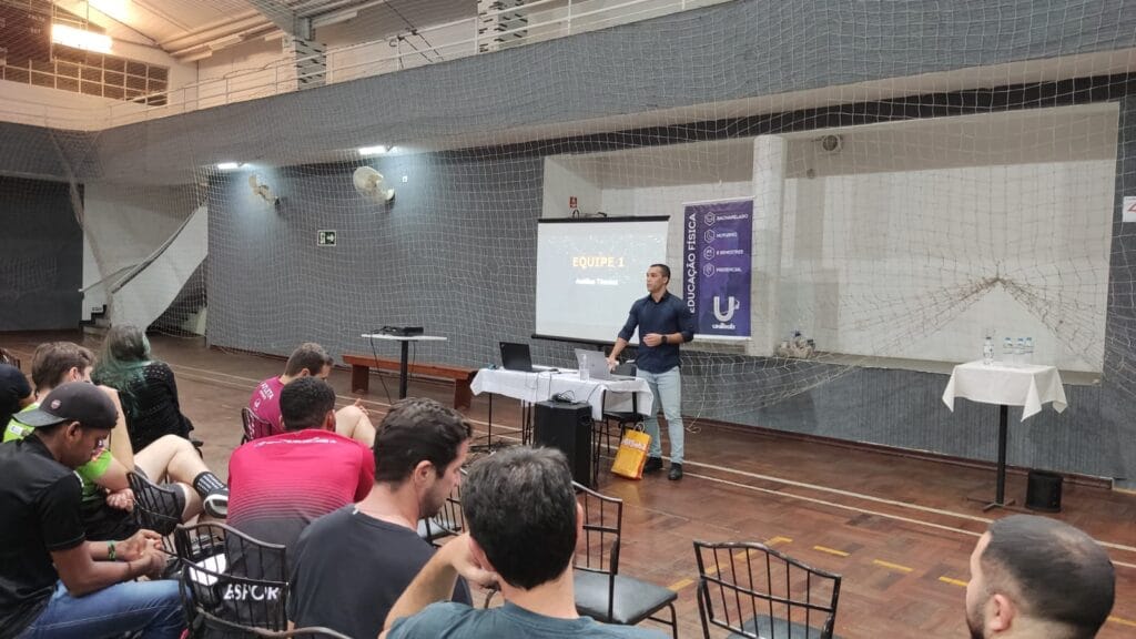 As atividades começaram na segunda-feira, dia 05, com uma palestra sobre “Métodos avançados na musculação: Muito além do volume de treino”, ministrada pelo Prof. Me. Henrique Miguel.