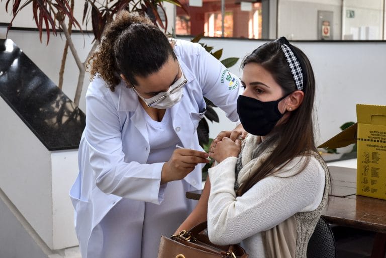 A parceria da instituição com o Departamento Municipal de Saúde imunizou profissionais da Educação e aeroviários. Em ação realizada no Centro Cultural Unifeob (Campus Centro)