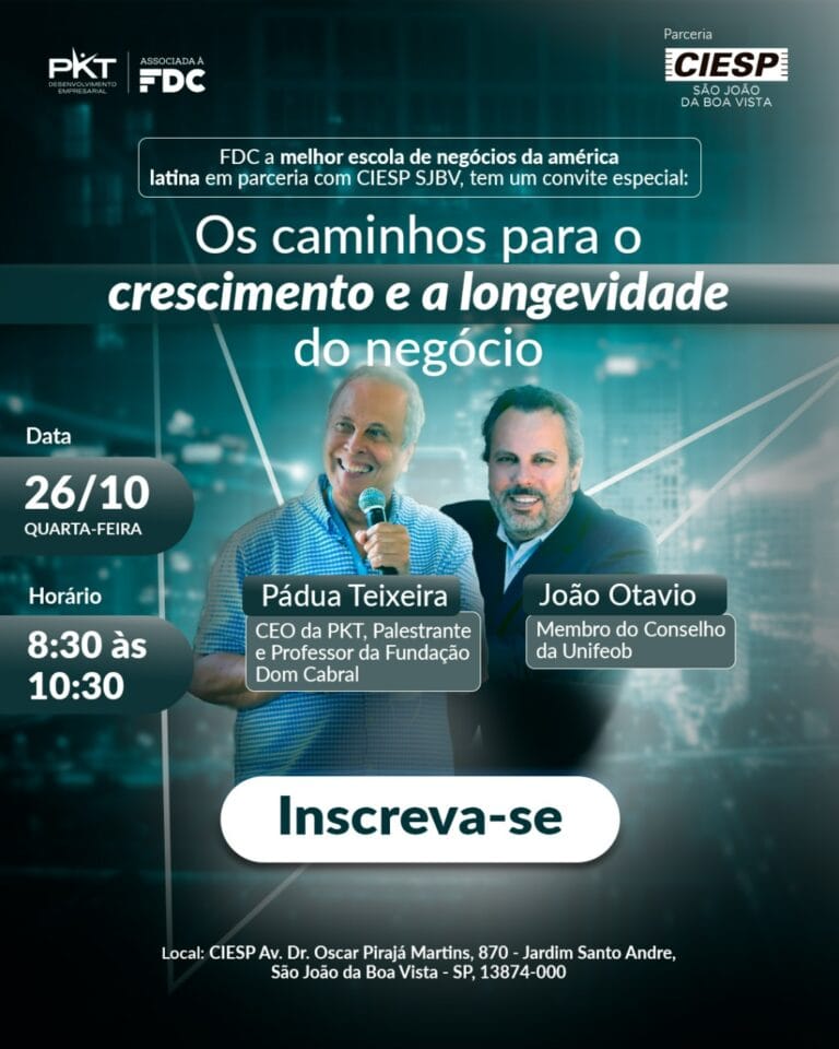 A PKT associada à Fundação Dom Cabral em parceria com o CIESP de São João da Boa Vista irá realizar um evento com palestras e