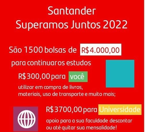 Em parceria com a Unifeob, o Santander Universidades abriu novamente as inscrições e nesta, contemplará três estudantes do ensino superior, seja técnico, graduação ou pós-graduação