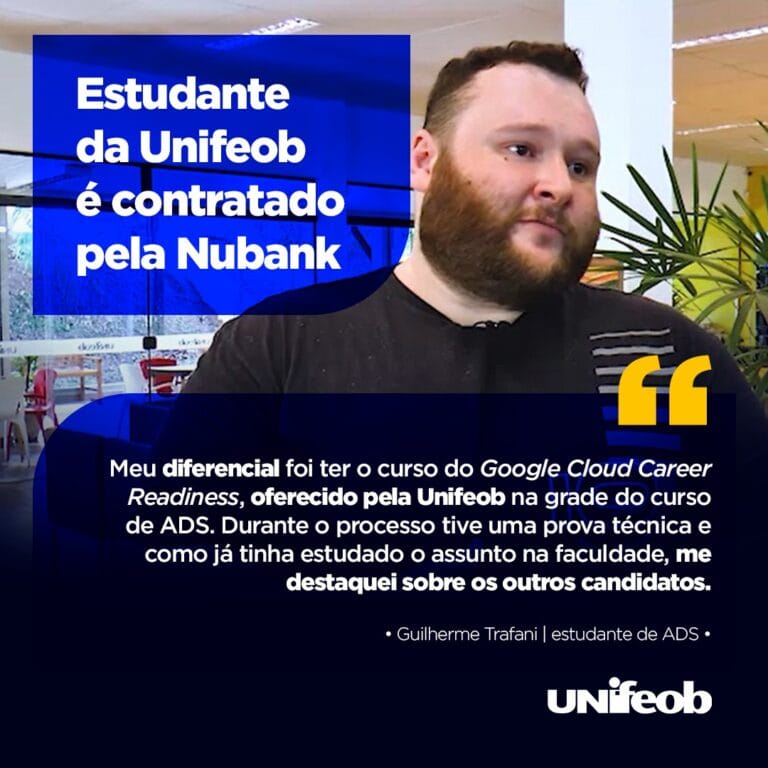 Guilherme Trafani, estudante de ADS da Unifeob, tem motivos para comemorar. Por meio de uma oportunidade ofertada na grade do Centro Universitário, o estudante conseguiu