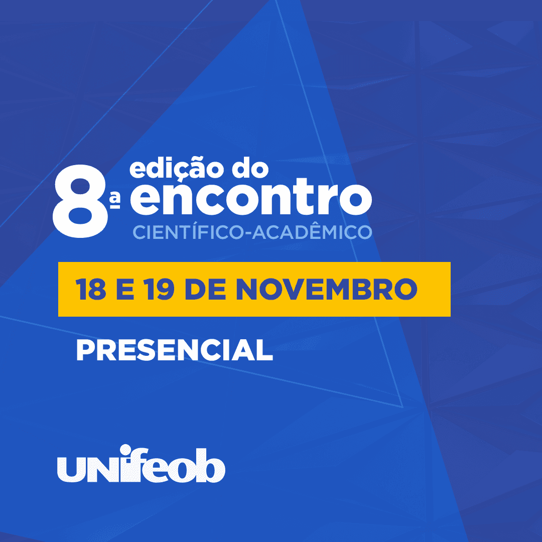 A Unifeob realizará o 8º Encontro Científico-Acadêmico presencialmente nos dias 18 e 19 de novembro. O encontro reunirá as apresentações dos Projetos de Iniciação Científica, Projetos Integrados (PI), Projetos de extensão e Trabalhos de Conclusão de Curso (TCC), finalizados ou em andamento, de estudantes dos cursos técnicos, dos cursos de graduação e de pós-graduação. Os temas são diversos e estão relacionados às atividades desenvolvidas nos cursos.