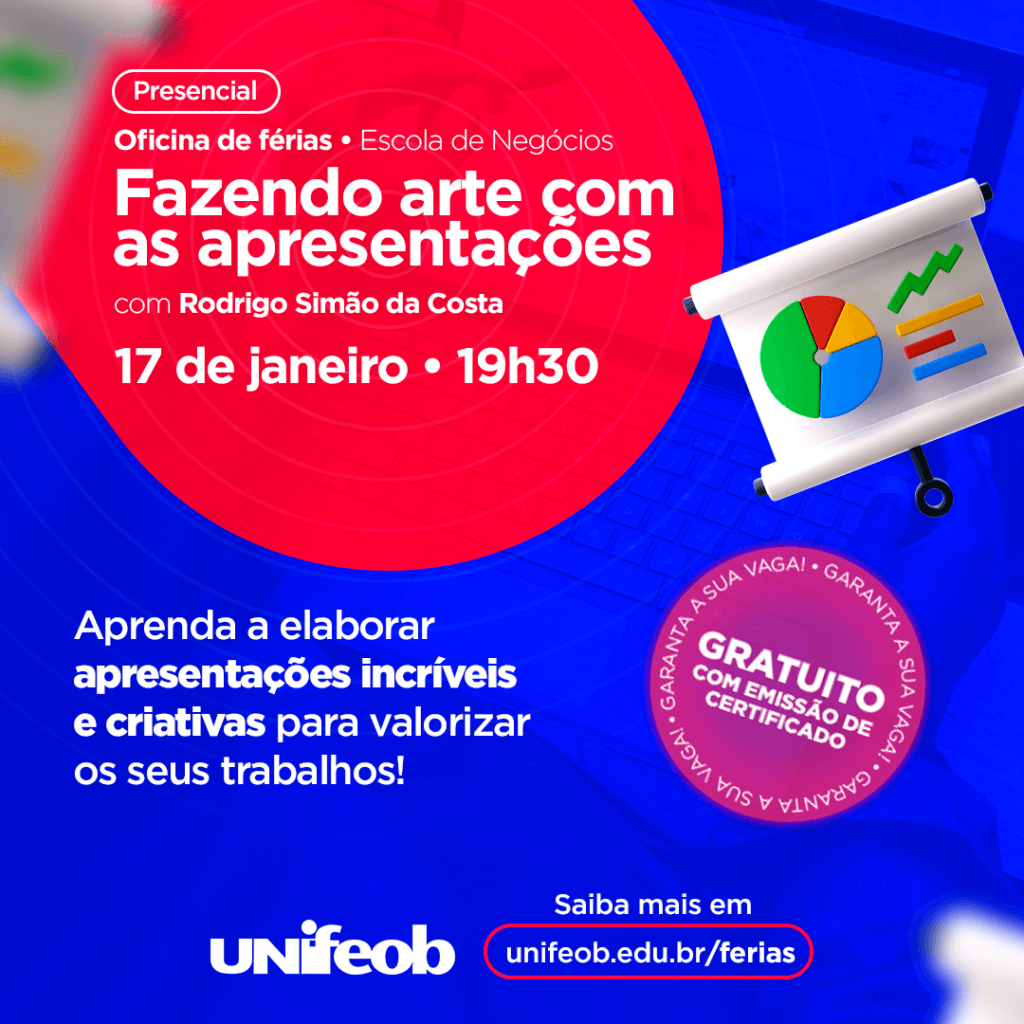 Serão disponibilizados cursos e oficinas 100% gratuitos e com direito a certificado. Uma oportunidade única para quem quer começar a ter contato com o curso e se destacar na turma.