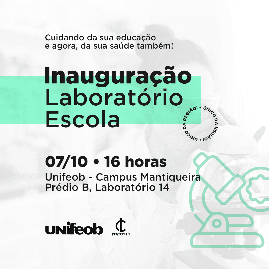 A Unifeob em parceria com o laboratório CenterLab vai inaugurar o primeiro Laboratório Escola da região na próxima sexta-feira (07) às 16h. O laboratório será dentro do Campus Mantiqueira.