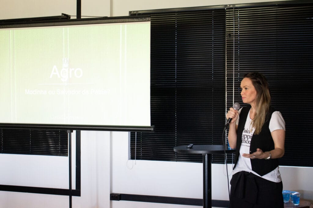 Com uma apresentação denominada “Agro: Modinha ou Salvador da Pátria”, Carol Curimbaba abordou temas como Revoluções agrícolas, agro em números, tecnologia e sustentabilidade, mitos e principais riscos.