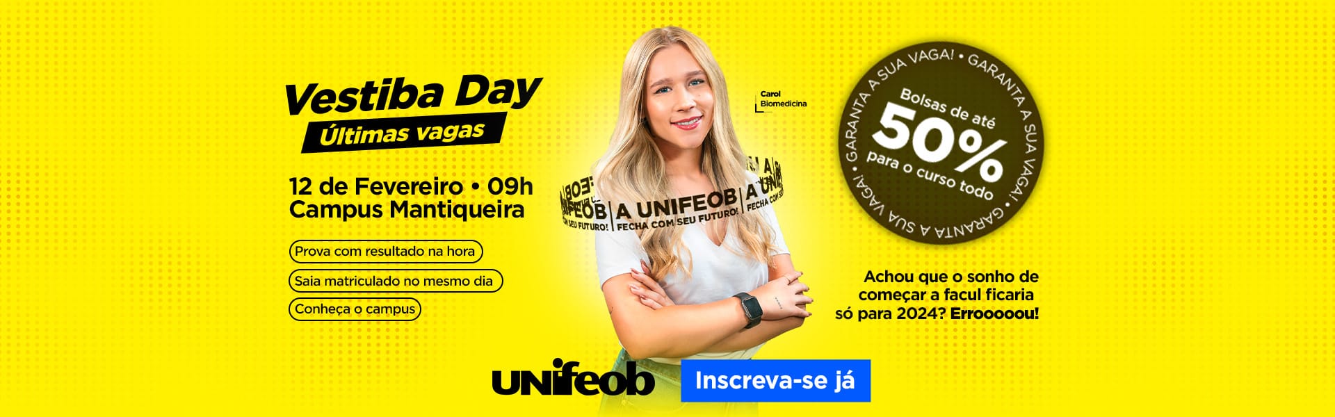 Os interessados devem fazer a inscrição pelo site vestiba.old.unifeob.edu.br/day. O Vestiba Day será realizado no dia 12/02, às 9 horas no Campus Mantiqueira.