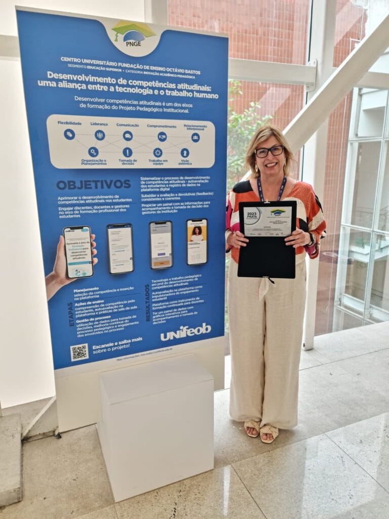 “Ser finalista no PNGE, na categoria inovação acadêmico pedagógica é gratificante, pois traduz o reconhecimento de uma prática eficaz em meio a tantas outras inscritas nacionalmente. A criação de uma plataforma digital para auxiliar o desenvolvimento de competências comportamentais e socioemocionais, aqui chamadas de atitudinais, significa usar a tecnologia como aliada do trabalho humano. O Projeto Pedagógico Institucional visa proporcionar aos estudantes as competências que o mundo atual está exigindo e o prêmio é o reconhecimento do trabalho realizado por toda a equipe UNIFEOB que tem o propósito de “transformar a vida das pessoas por meio da educação”, destacou Inês Waitz, coordenadora Pedagógica Institucional.